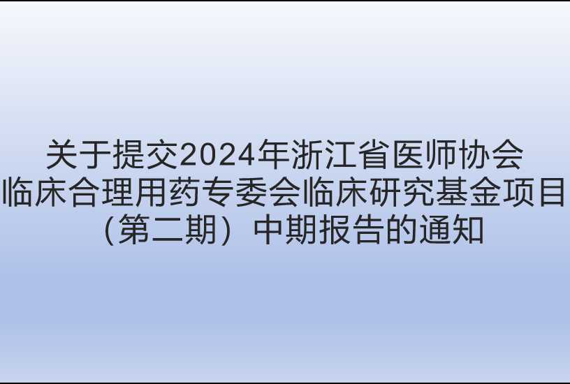 尊敬的各项目负责人: 根据U9彩票799cc临床合理用药专委会临床研究基金项目结题的相关规定:《2024年U9彩票799cc临床合理用药专委会临床研究基金项目(第二期)》中期报告相关注意事项和规定如下:1.提交项目中期报告:电子版(Word版本及盖章后PDF)发送至邮箱:zjsysxh202